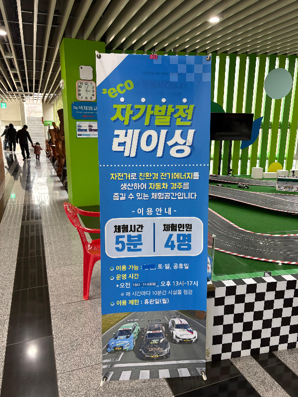 전기를 만들고 자동차 레이스를 하는 체험존이에요.