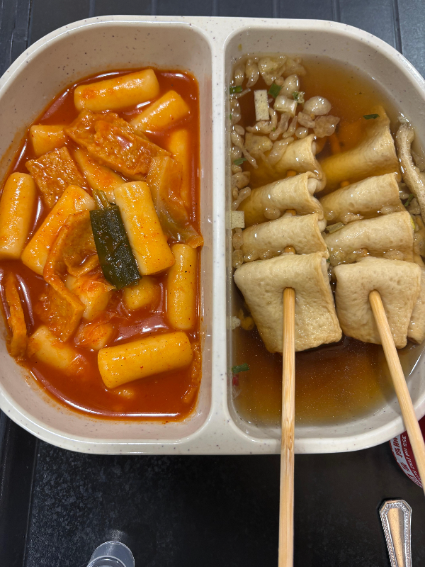 돈가스, 햄버거, 떡볶이, 어묵 등 아이도 무난하게 먹을 수 있는 메뉴 구성이었어요.