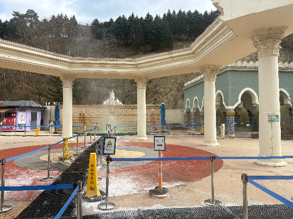 점심은 2층에서 먹고 나오면 바로 유로스파(외부 스파)로 이동하는 문이 있습니다.