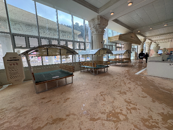 실내에는 여기저기 온수탕이 있어요